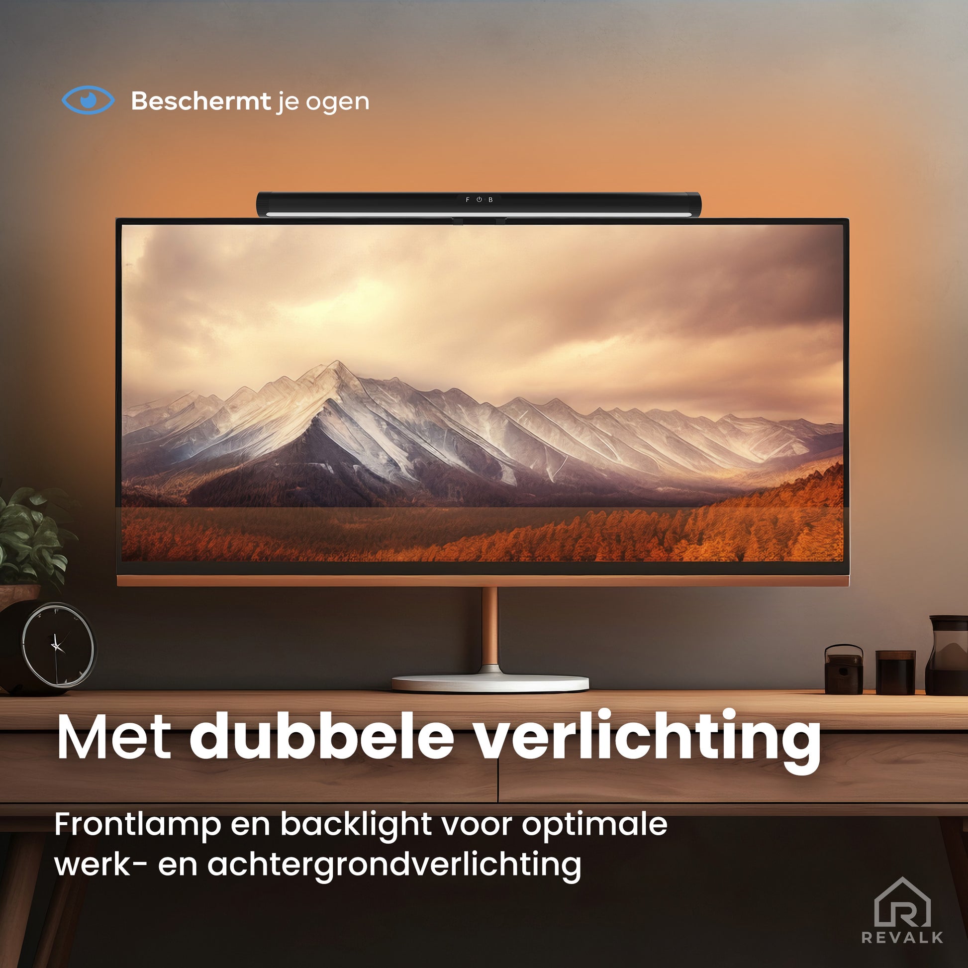 Op zoek naar een bureaulamp voor op je monitor voor die late avonden thuiswerken? Dan is de Revalk Monitor lamp de oplossing voor jou! Past op elke computer monitor, heeft 3 dimbare lichtstanden, een anti-slip rand en een laag stroomverbruik door de LED lamp.